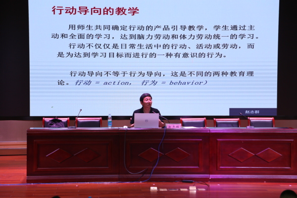 开班仪式结束后,赵志群教授作了题为《行动导向学习的理论与实践》培训第一讲。本次培训为期5天,主要培训内容是针对德国职业教育典型的行动导向教学法进行理论讲述与实践练习,分别是项目教学法、引导文教学法、案例教学法、微观教学法等。(图/余昀 文/张建雄)
